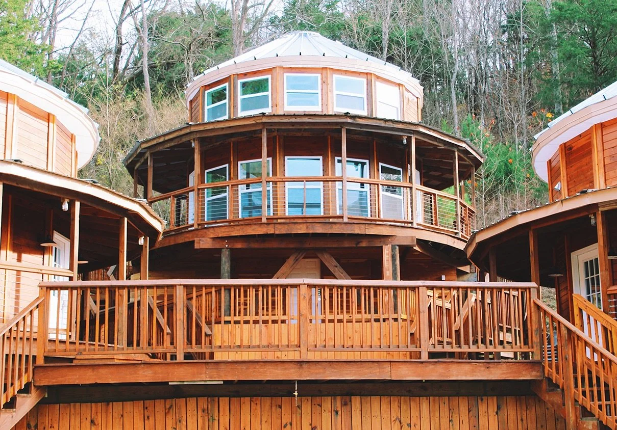 Please note that the upper bedrooms in all three yurts have walls that do not go all the way up to the ceiling so they will be open to the great room.